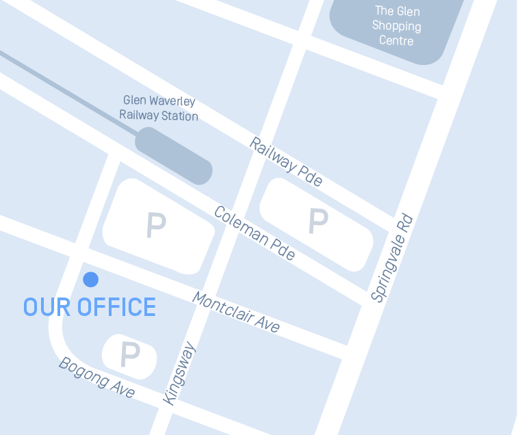 Based in Glen Waverley in the eastern suburbs of Melbourne, our offices are easy to access, with free parking directly across the street.